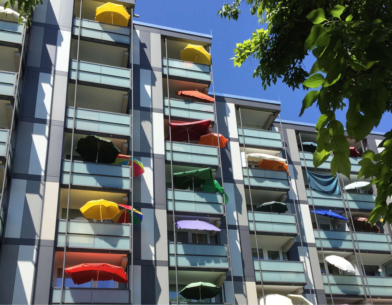 - Jede Wohnung hat einen Balkon in Süd- bzw. Westausrichtung und ist mit einem Bad und einer Einbauküche ausgestattet